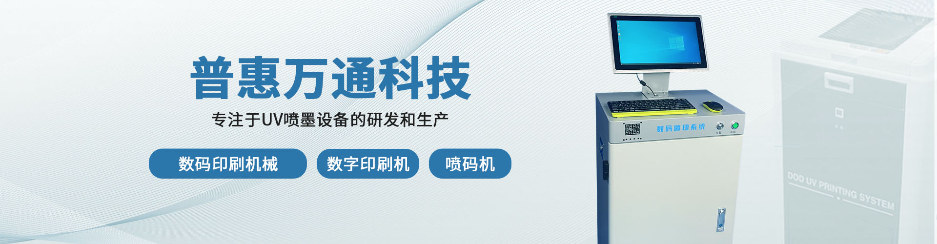 普惠万通科技(北京)有限公司,专注于UV喷墨设备的研发和生产,普惠喷墨数字印刷机在包装行业可匹配凹印机、水印机、预印机、覆膜机等对塑料软包、白卡纸、瓦楞等材质进行二维码、条码、文字、图形等进行数码喷印,产品应用广泛。